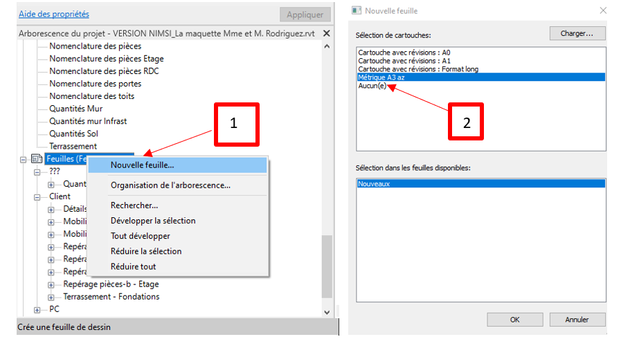 2/4 Créez une nouvelle feuille (1) sans cartouche (2)