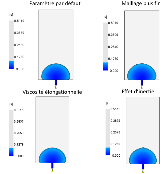 La viscosité élongationnelle a un impact plus négligeable que l’effet d’inertie. Cependant, elle peut être plus impactant lorsqu’il y a un fort changement de section.