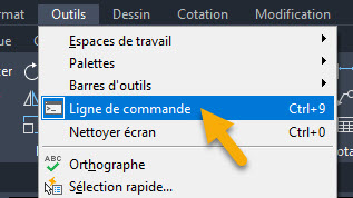ou depuis le menu déroulant Outils -> Ligne de commande