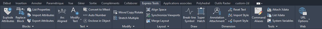 Le menu Express ne concerne qu'AutoCAD, et les AutoCAD métiers : AutoCAD Architecture, MEP, Mechanical...