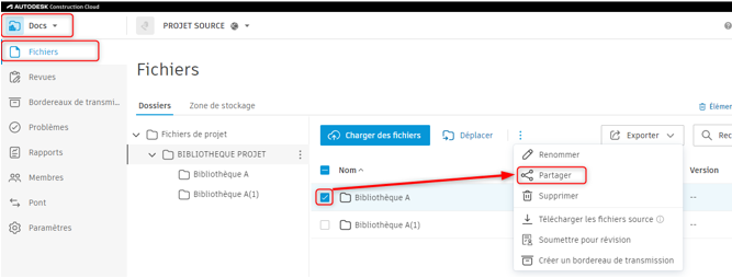 Placez vous sur le projet contenant le dossier ou le fichier que vous souhaitez partager avec un autre projet :