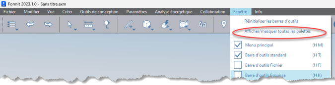 - Grande amélioration avec la possibilité « d’afficher/masquer » toutes les palettes à partir du menu « Fenêtre – Afficher/masquer toutes les palettes ».