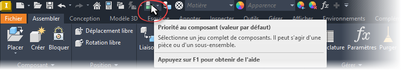 - Pour un assemblage. Dans la barre d'outils d'accès rapide, cliquez sur Sélectionner, puis choisissez le mode de priorité :