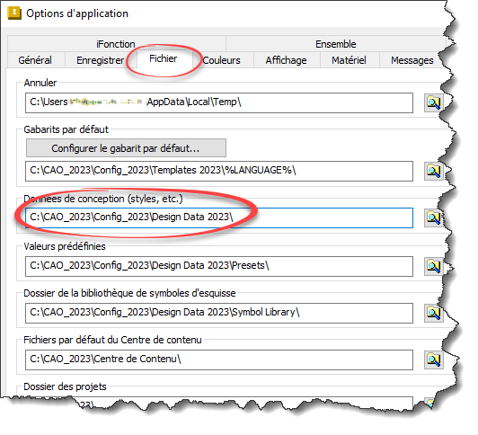 Il faut aussi vérifier les chemins déclarés dans les options d'application Inventor