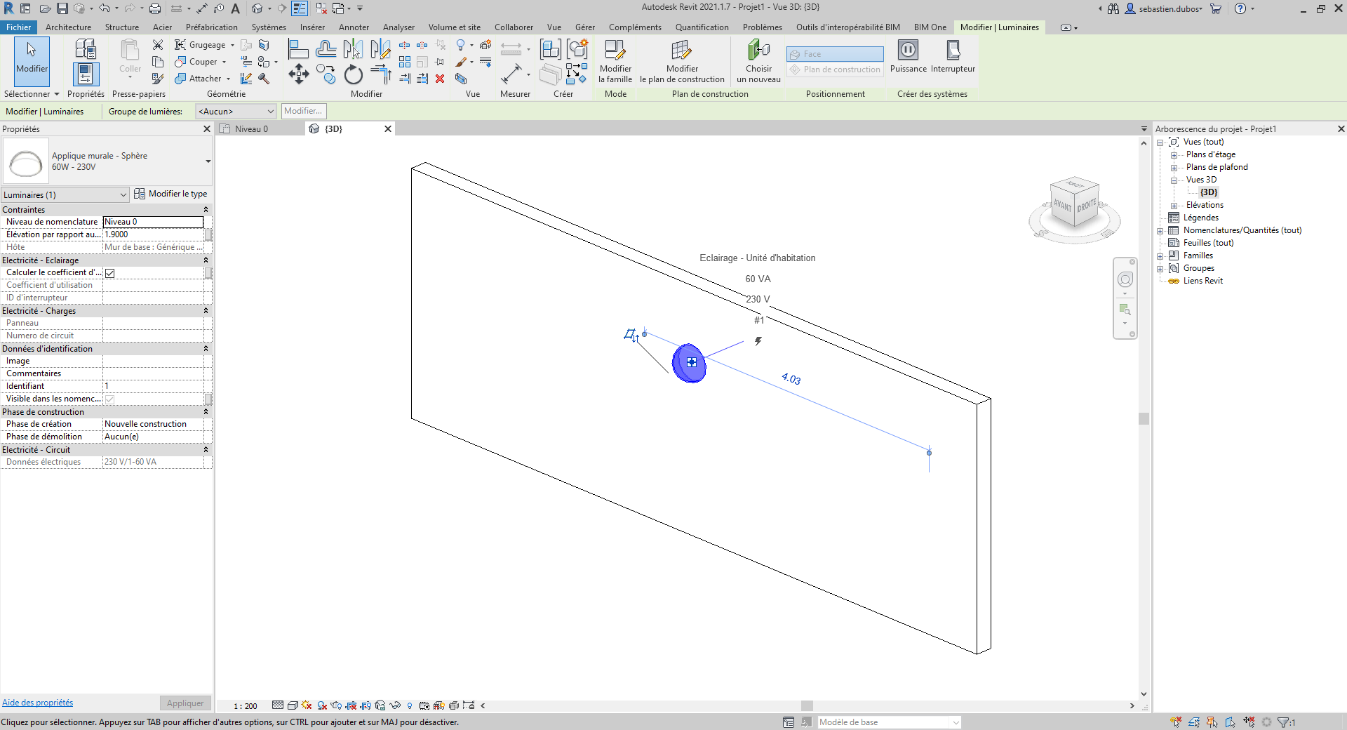 - Cliquez sur "Copier" et sélectionnez la famille "Applique murale". Le symbole de "Contrôle" apparaît alors. Vous pouvez terminer l’action.