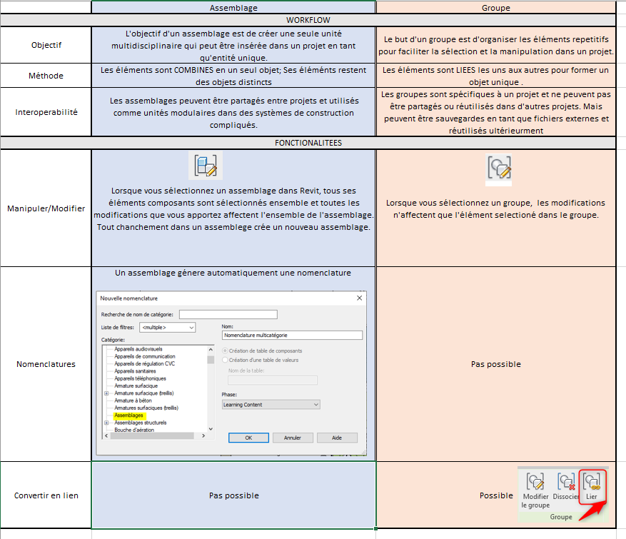 Comme nous l'avons vu dans les deux derniers articles, les assemblages et les groupes sont deux fonctionnalités distinctes de Revit qui permettent d'organiser les éléments répétitifs d'une maquette.