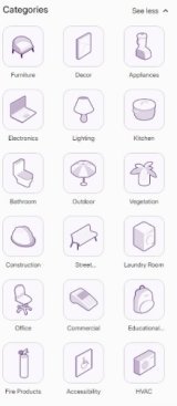 L’interface de Blocks est intuitive. Les familles y sont organisées par catégorie : cuisine, salle de bain, construction, végétation, etc.
