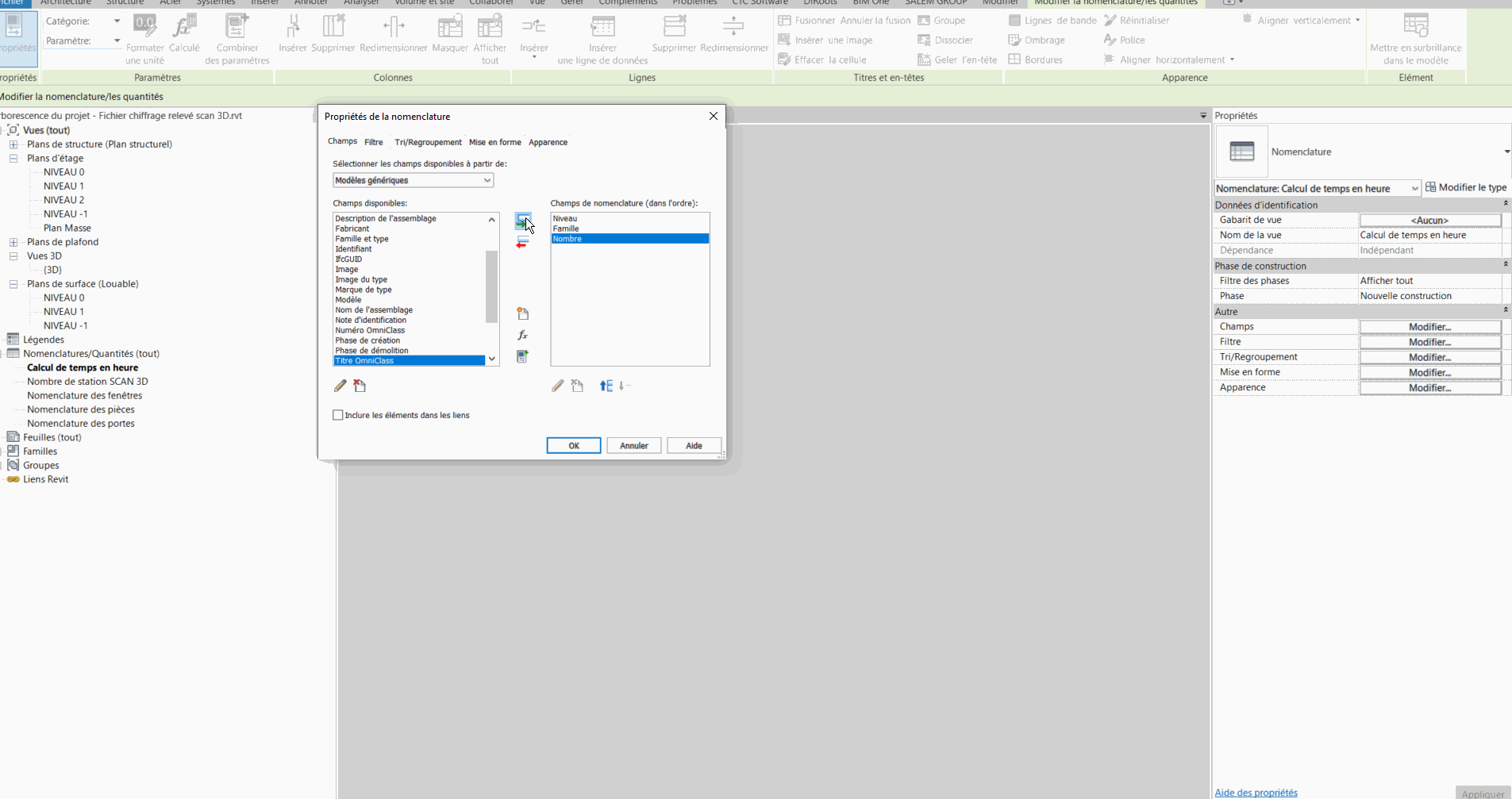 3.-Ajouter le paramètre « temps » dans les champs de la nomenclature