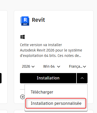 Pour aller plus loin : il est possible de faire une installation personnalisée qui permettra de créer un package d'installation (Revit + MAJ + extensions et bibliothèque) vers un emplacement d'installation choisi. Cet outil est plus orienté pour les responsable de service informatique.