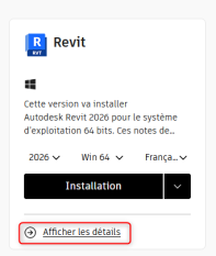 Remarque : pour tout complément Revit vous pouvez cliquer sur le lien "Afficher les détails"
