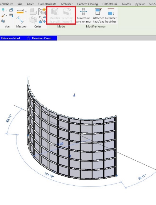 Lors de la création d’un mur rideau incurvé, l’onglet « modifier le profil » n’est pas disponible