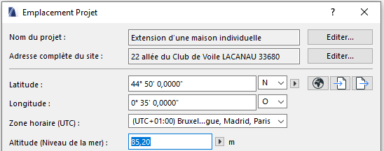 Le niveau de la mer se renseigne via l’onglet Option=>Préférences projet=>Emplacement du projet.