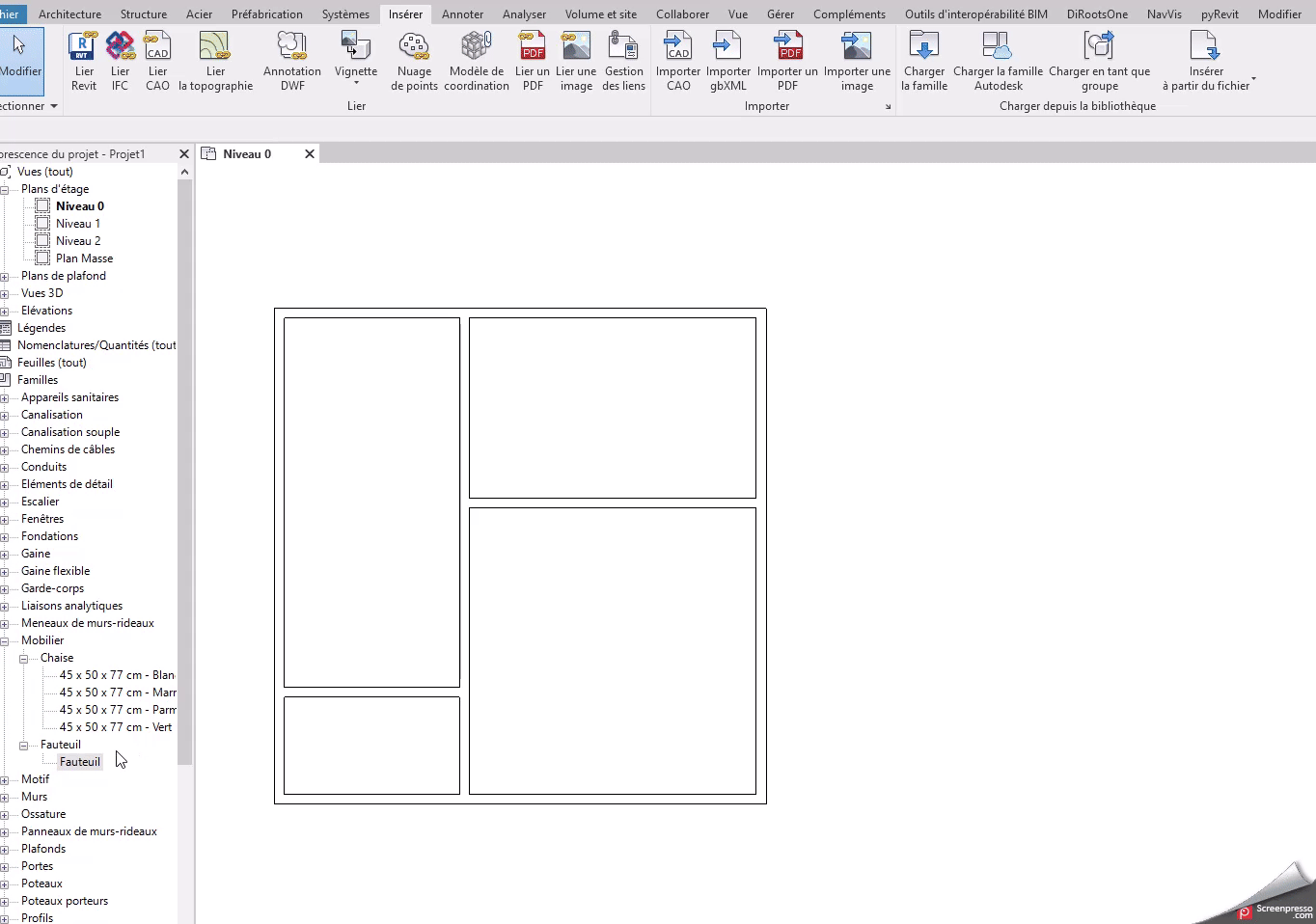 Depuis la version REVIT 2022, il est possible de placer un élément facilement au milieu d’une pièce avec le « Remplacements d’accrochage »