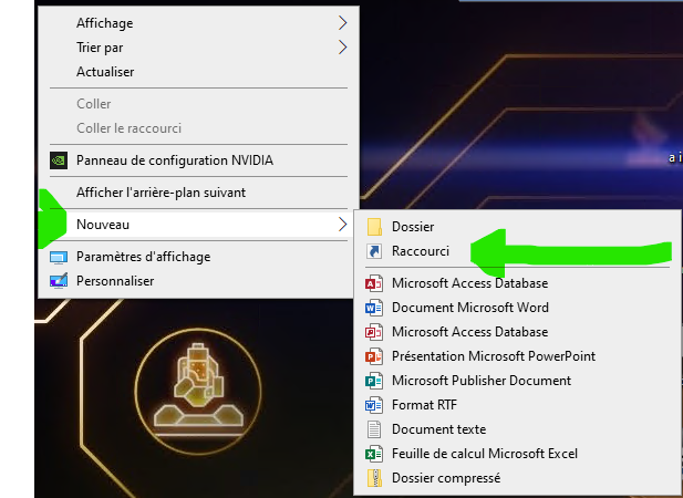 Un clic droit sur le bureau, nouveau, raccourci :