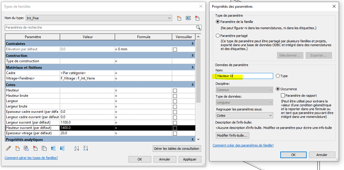 Il est donc important de vérifier les liens entre vos paramètres, suite à une modification de paramètres dans votre famille imbriquée, et les recréer dans la famille hôte si ils ont sautés.