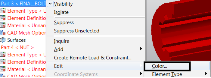 Autodesk Simulation Mechanical peut également utiliser ou non les couleurs définies dans le modèle CAO. Sinon (dépendant du choix de l’utilisateur durant cette option), le logiciel utilise ses propres conventions d’attribution de couleur.