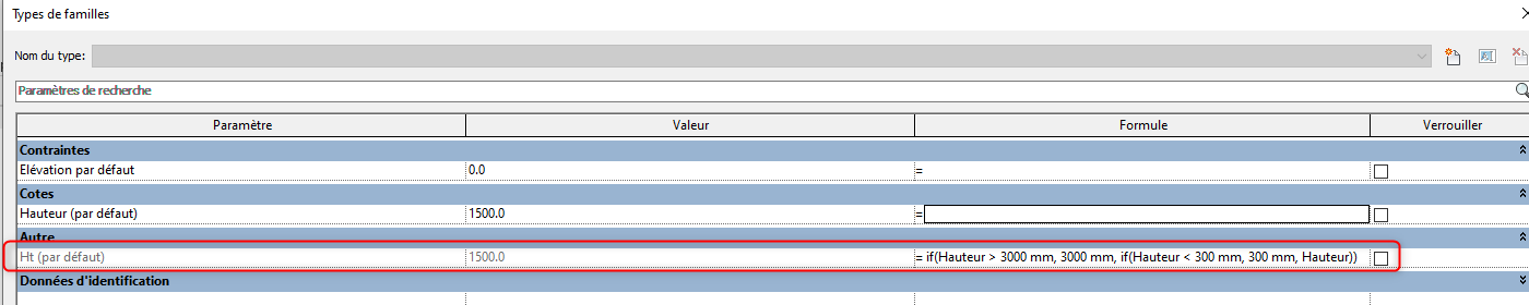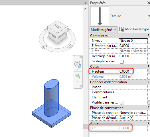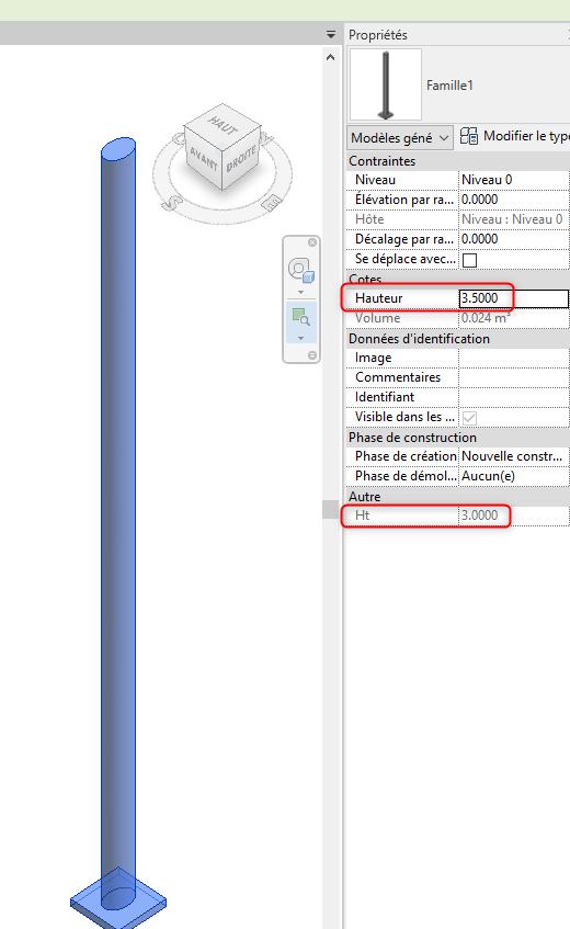 Enfin on associe le paramètre de "contrôle" (dans cet exemple "Ht") à la cote paramétrique qui définit la hauteur.