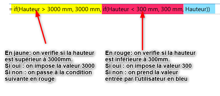 Ainsi l'utilisateur "pilote" la hauteur avec le paramètre "Hauteur" qui est ensuite borné par le paramètre de "contrôle" " Ht" qui donne la hauteur géométrique de l'objet.