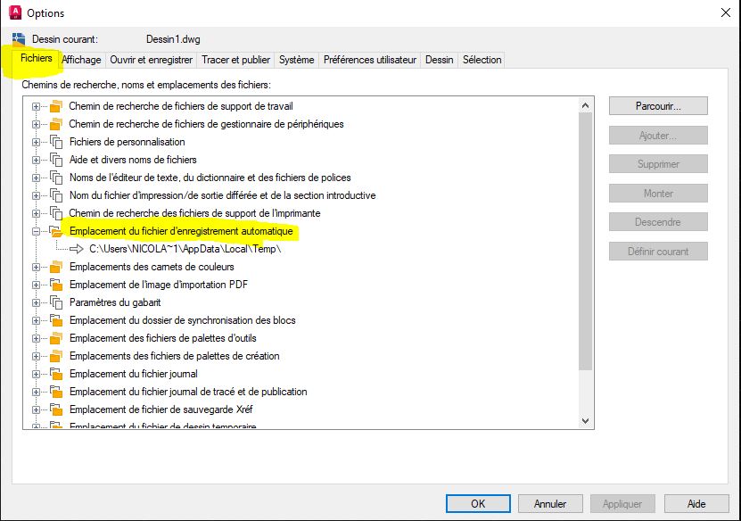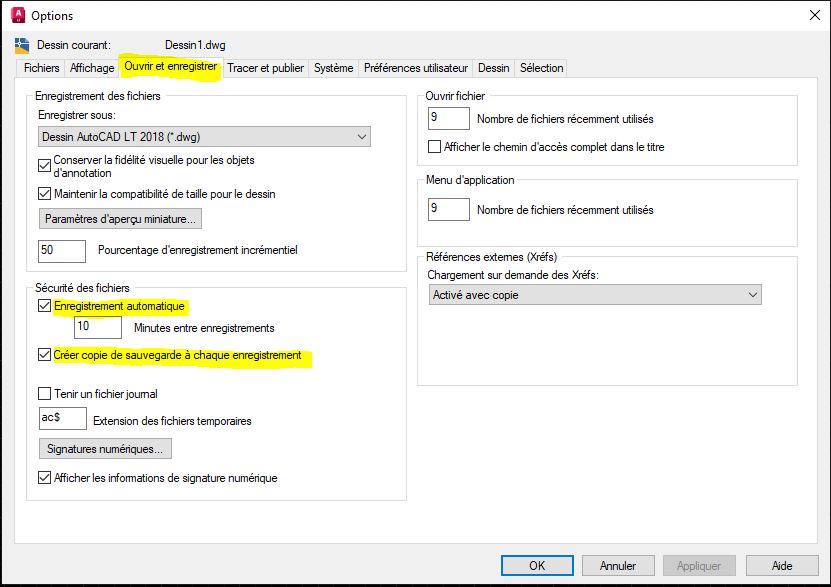 Si le dessin ne s'ouvre pas, vous pouvez utiliser la sauvegarde automatique.