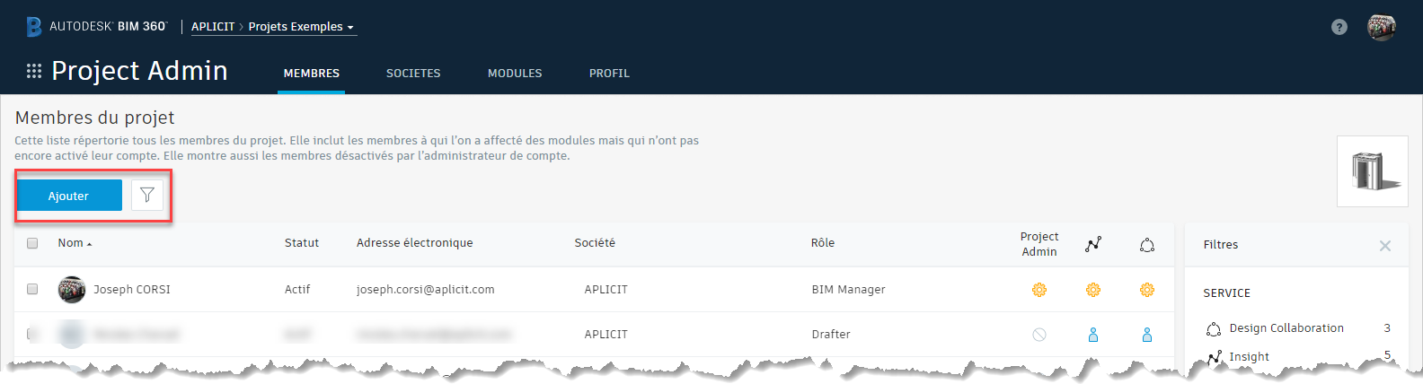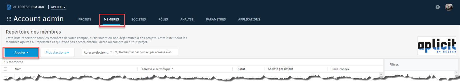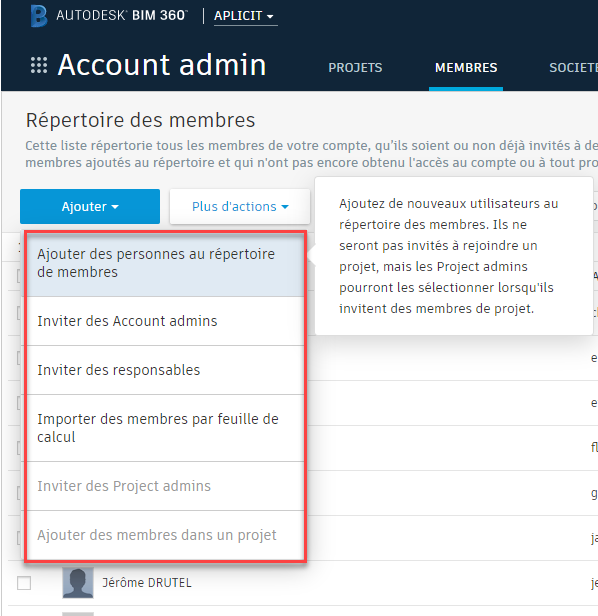 Nous allons voir comment donner les droits d’accès utilisateurs dans BIM 360 (Membres)