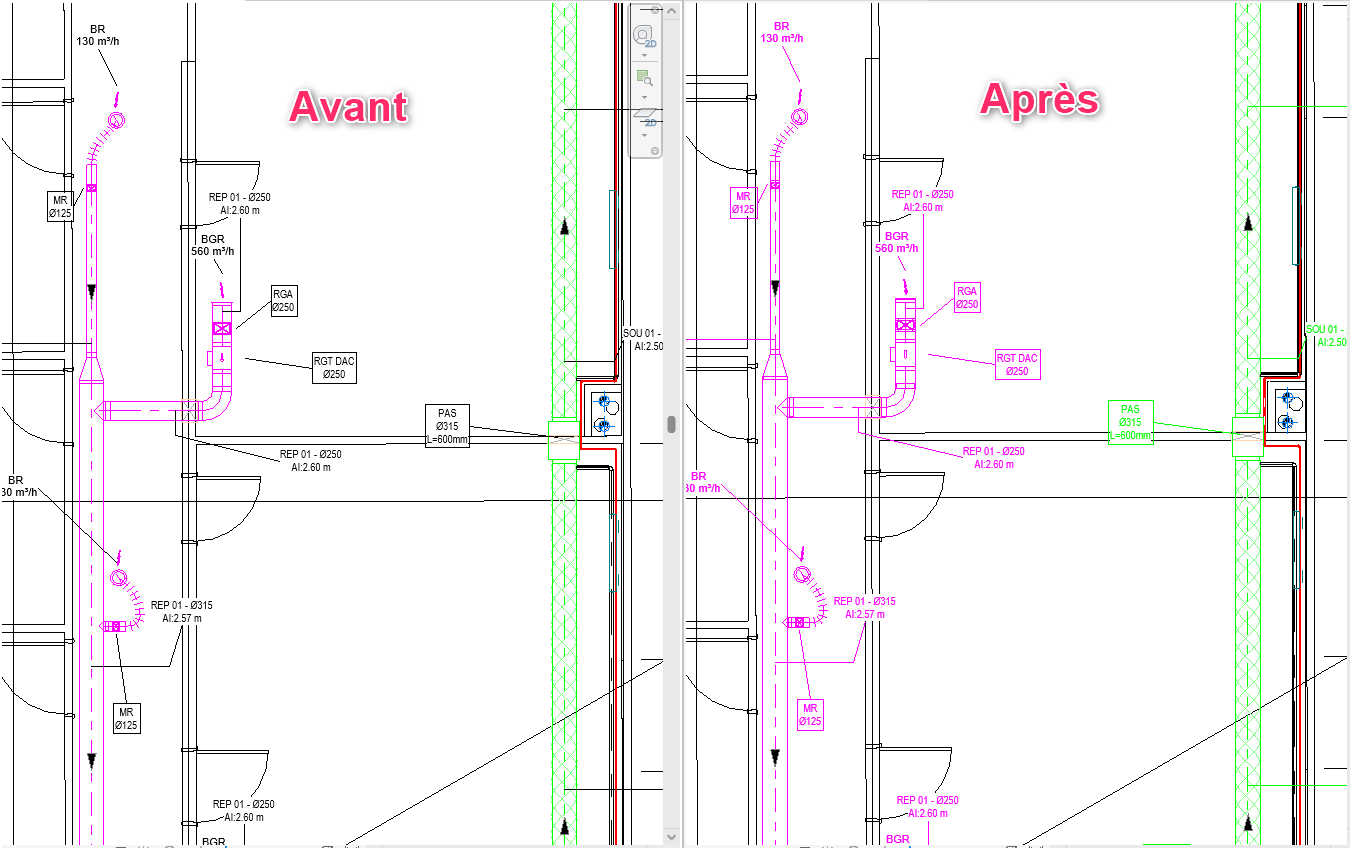 Ce script permet d'utiliser une même étiquette pour plusieurs systèmes MEP et automatise par vue le remplacement de couleur (permettant aussi de coloriser la ligne de repère)