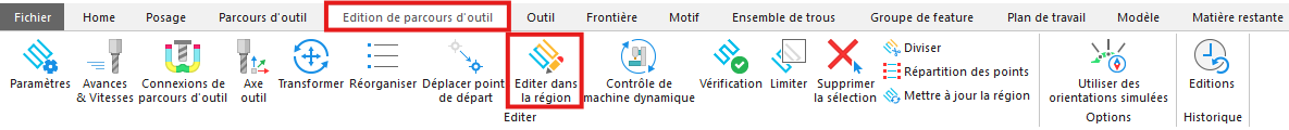 « Edition dans la région » vous évitera de retraiter des parcours à fort temps de calcul ou une réorganisation des lignes ou autres modifications effectuées auparavant sur le parcours d’outil.