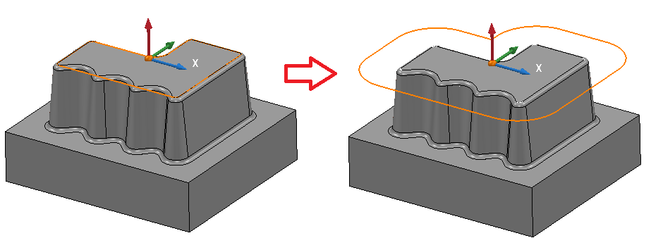 L’outil s’oriente instantanément depuis la courbe évitant ainsi la collision du porte outil sur le modèle.