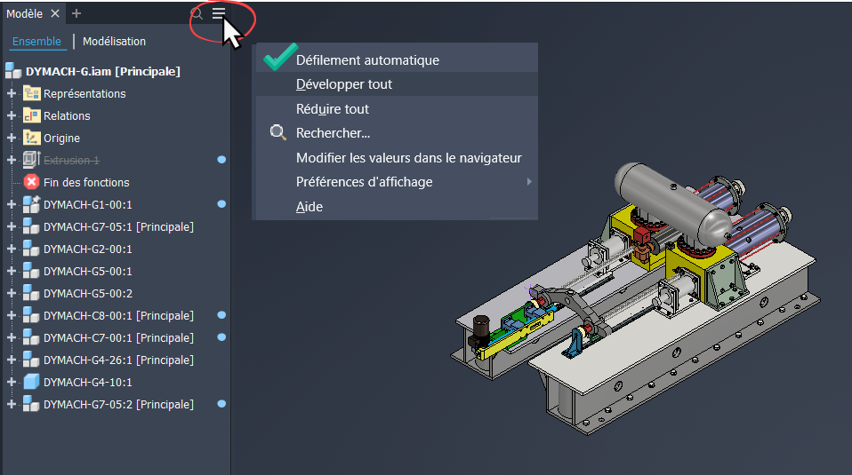 Gagner du temps avec le défilement automatique dans le navigateur d’Inventor