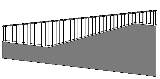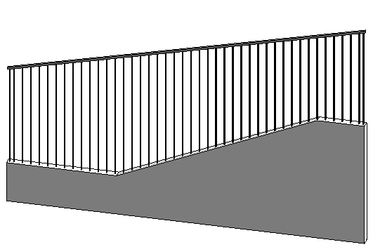 Pour que le garde-corps suive les différentes pentes, il est nécessaire d’utiliser un seul mur comme hôte, dont on aura modifié le profil (ou une seule dalle dont on aura modifié les sous-éléments).