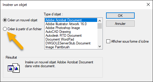 Insérer un objet OLE