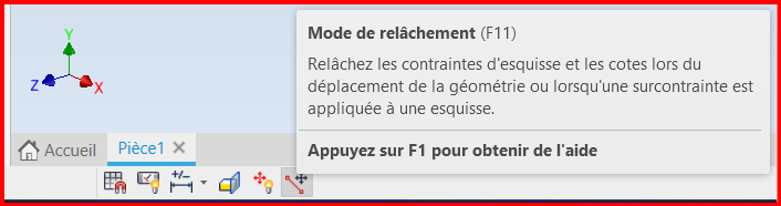 Un raccourci au "Mode de relâchement" est disponible en bas de la fenêtre graphique (En édition d'esquisse).
