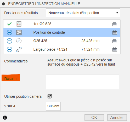 - Renommer l’élément à inspecter (nom qui apparaitra dans le rapport de contrôle)
