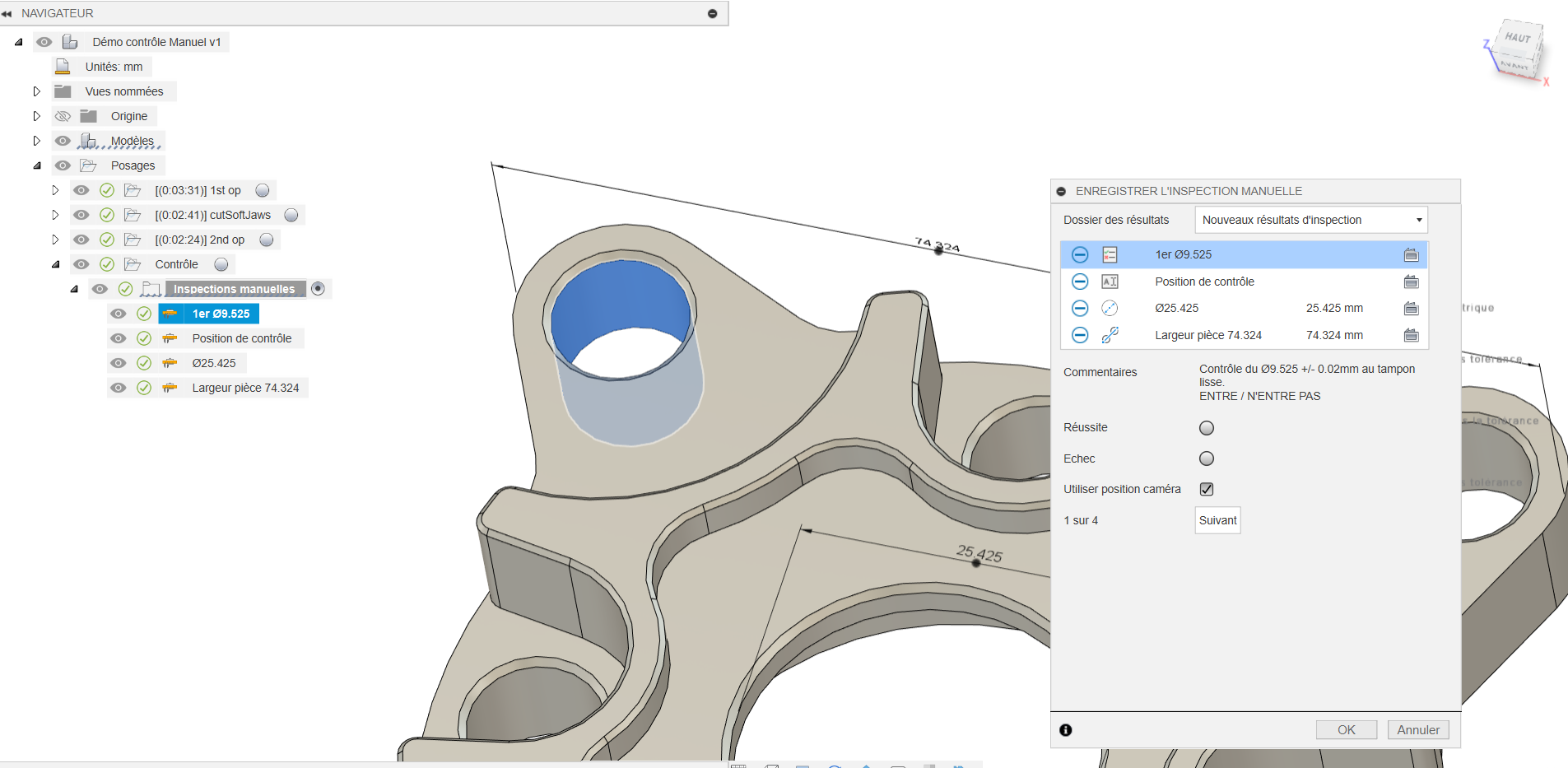 Ensuite lors de la mesure de tous les éléments, les vues CAO évolueront au fur et à mesure de votre avancement dans la gamme de contrôle.