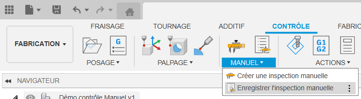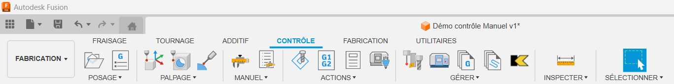 - Dans l’espace de travail FABRICATION, assurez vous d’être sur l’onglet CONTROLE :