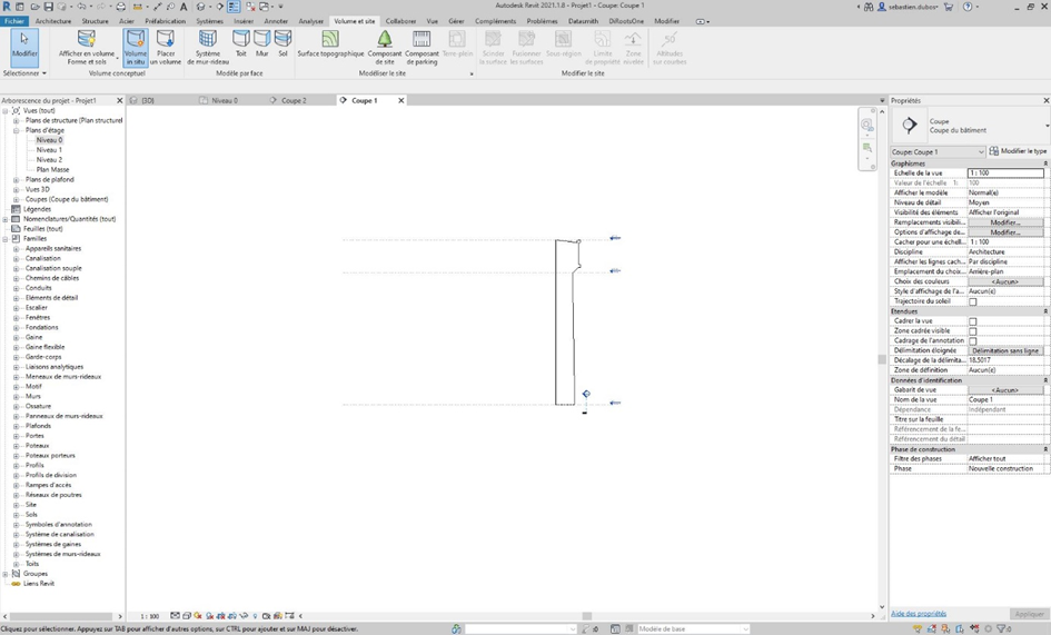 Etape 2 : Depuis la coupe, dessinez le profil que vous souhaitez donnez à votre "Volume in situ" avec des "Ligne de détail" depuis l’onglet "Annoter".
