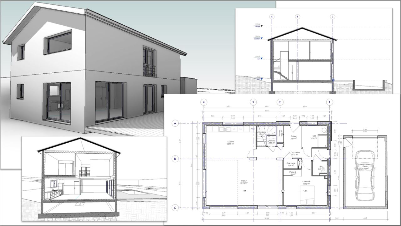 Pour s’y conformer, dans Revit il faut réaliser quelques opérations, notamment pour tout ce qui se passe au-dessus du trait de coupe.