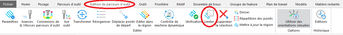 Allons dans le menu « Edition de parcours d’outil » et sélectionnons « Limiter »