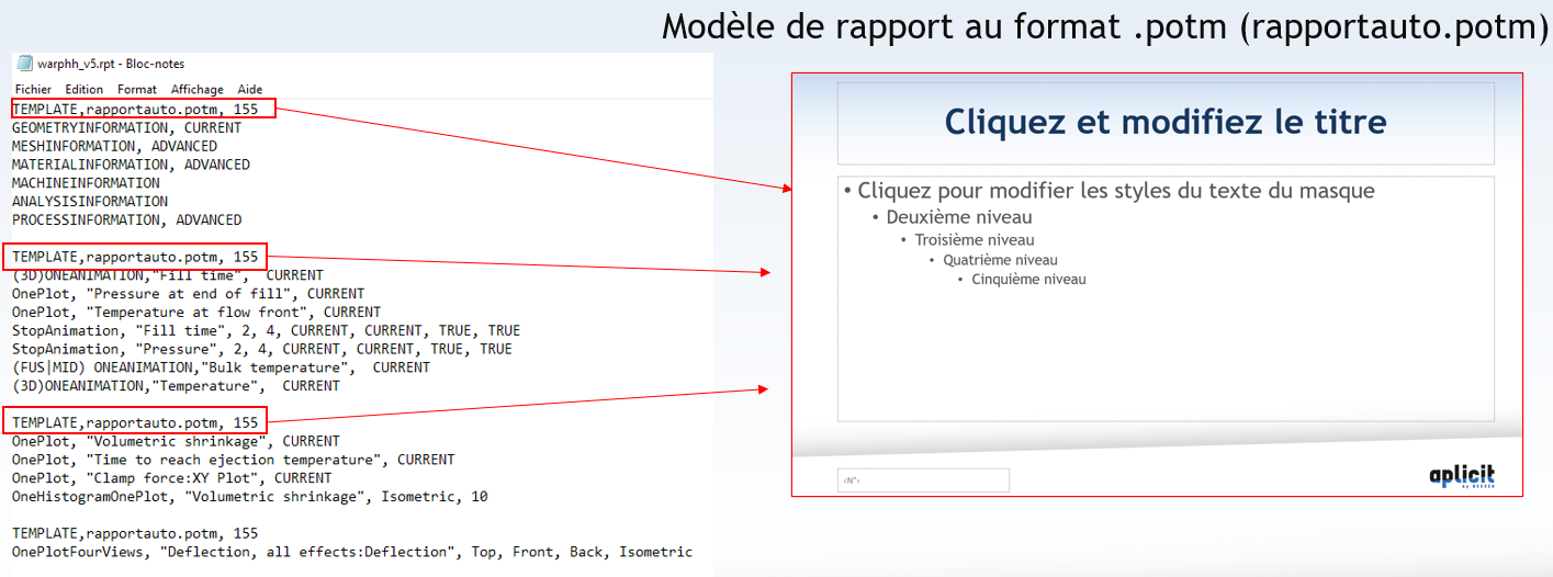 - Le fichier rapport « xxx.rpt » (des fichiers .rpt se trouvent dans C:\Program Files\Autodesk\Moldflow Synergy 2021.1\data\reports)