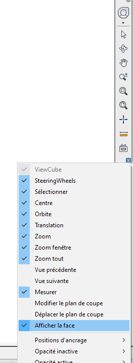 En activant cette fonction et en cliquant sur une face, le logiciel va positionner la pièce de manière à ce que l’élément sélectionné soit parallèle au plan de l’écran :