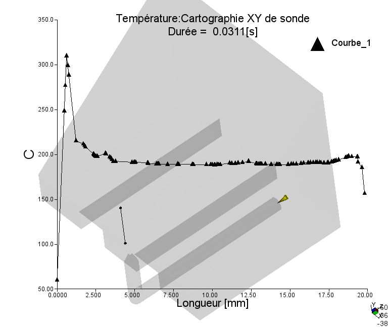 Grâce à ce type de résultat (Cartographie de sonde XY), il est possible de connaître l’évolution d’un résultat en fonction du temps (via l’animation) et à travers l’épaisseur (via l’abscisse).