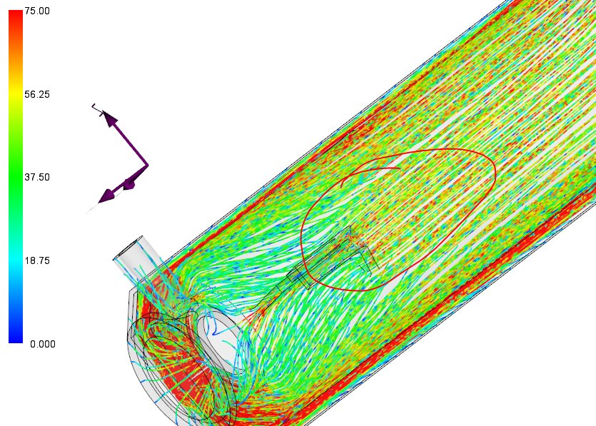 Le résultat trajectoire permet d’analyser la circulation de la matière dans la cavité.