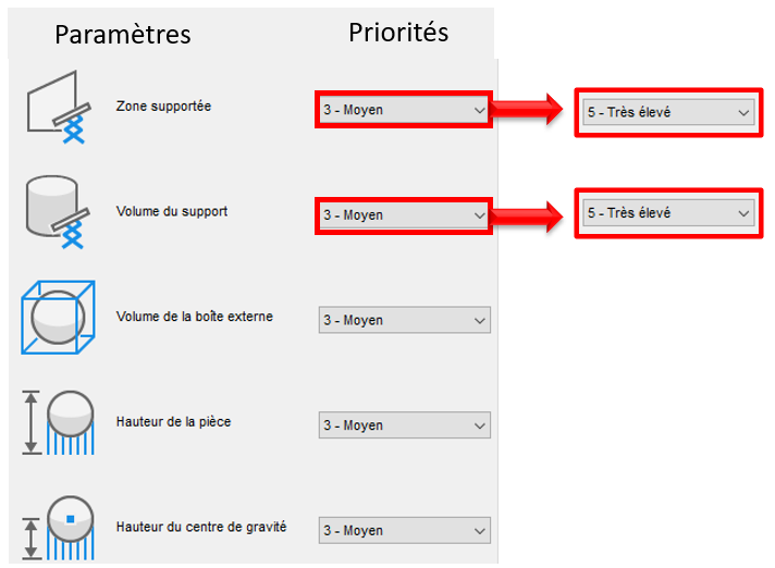 - Il est possible de déterminer les paramètres les plus importants pour optimiser l’orientation. Dans le cas de cet exemple les critères les plus importants sont :