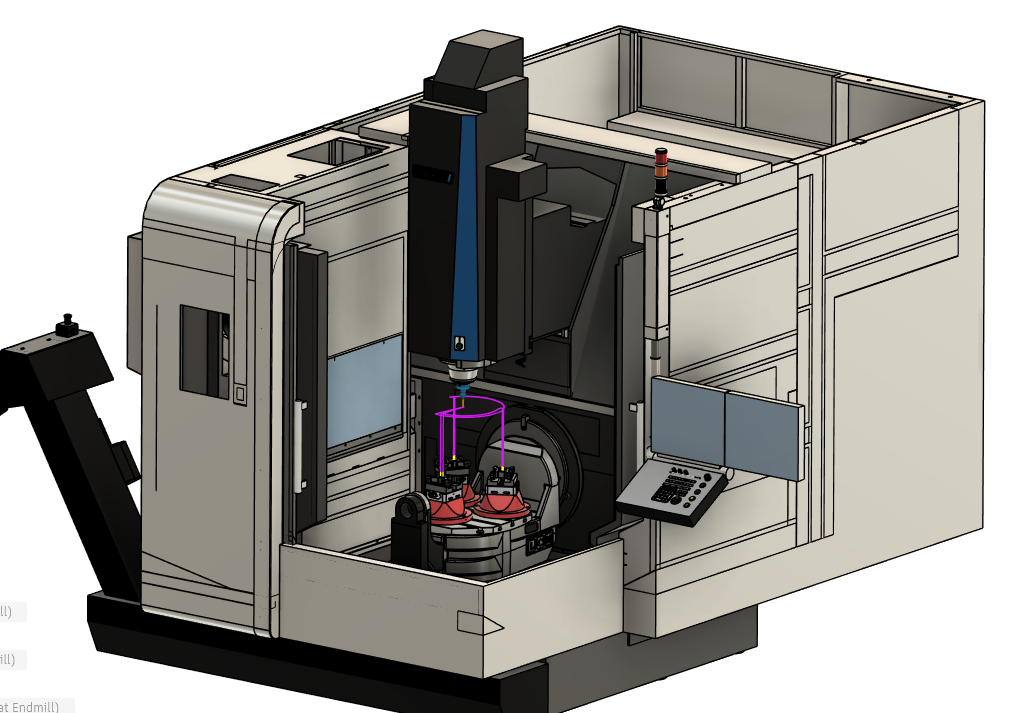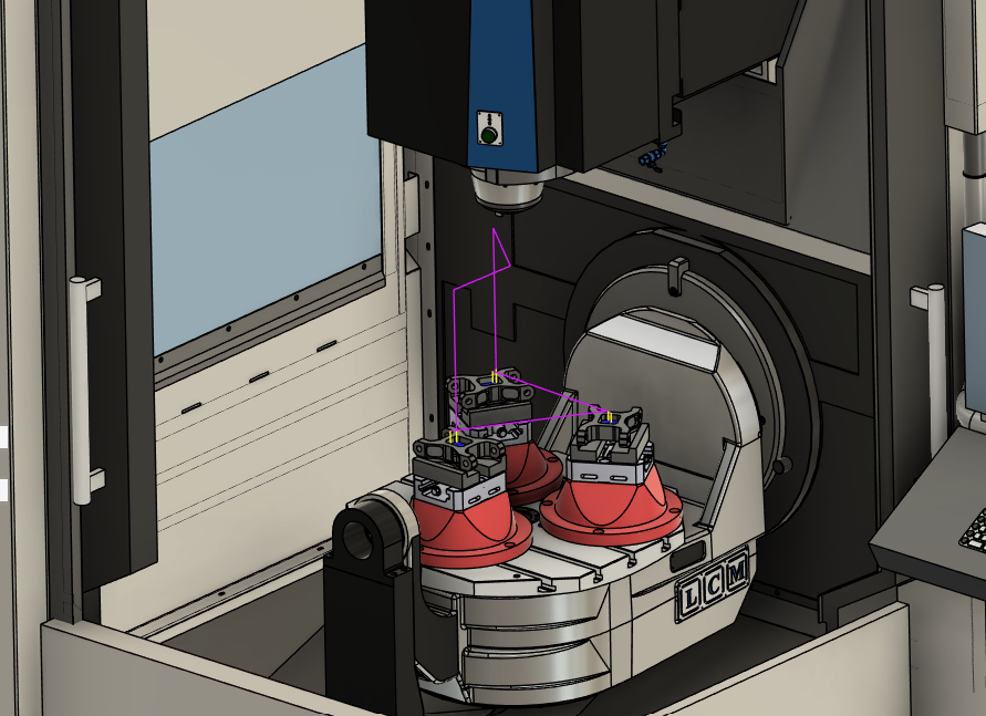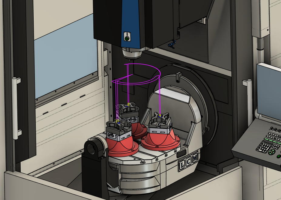 Elle permet d’usiner des pièces volumineuses, en jouant notamment avec l’axe C, lorsque les déplacements machines X et Y sont en limites de courses.