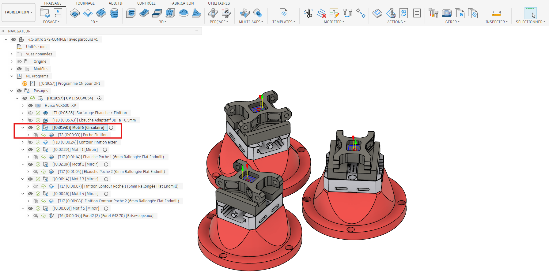 - Appliquez ensuite vos stratégies d’usinage désirées dans le motif