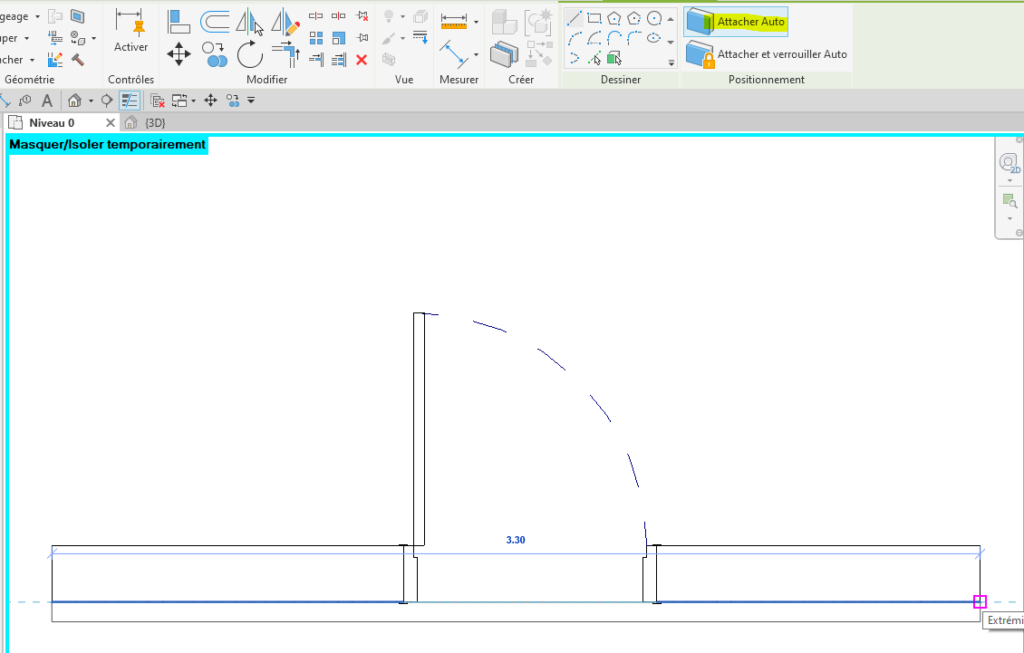 Vous pourrez ensuite décider de quel côté vous souhaitez effectuer ce retournement en cliquant sur l'icône "Autoriser le retournement aux extrémités" sur chaque extrémité du mur.