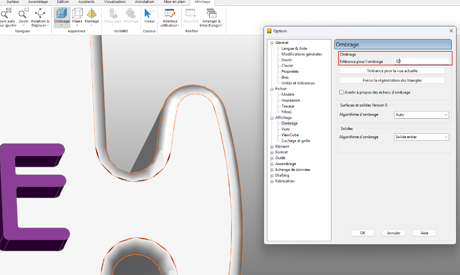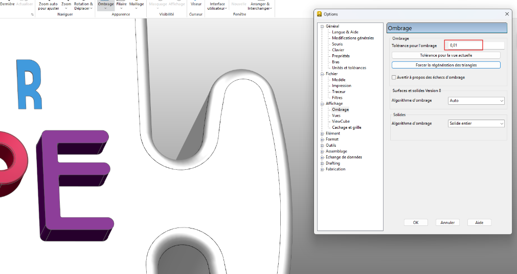 L’un des réglages les plus importants dans PowerShape est la tolérance d’ Ombrage ‘’ shading.’’