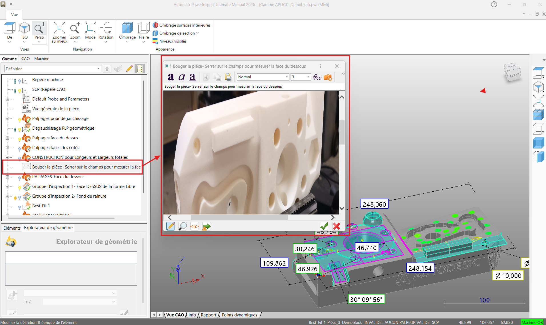 - Puis suivez les instructions données par PowerInspect :