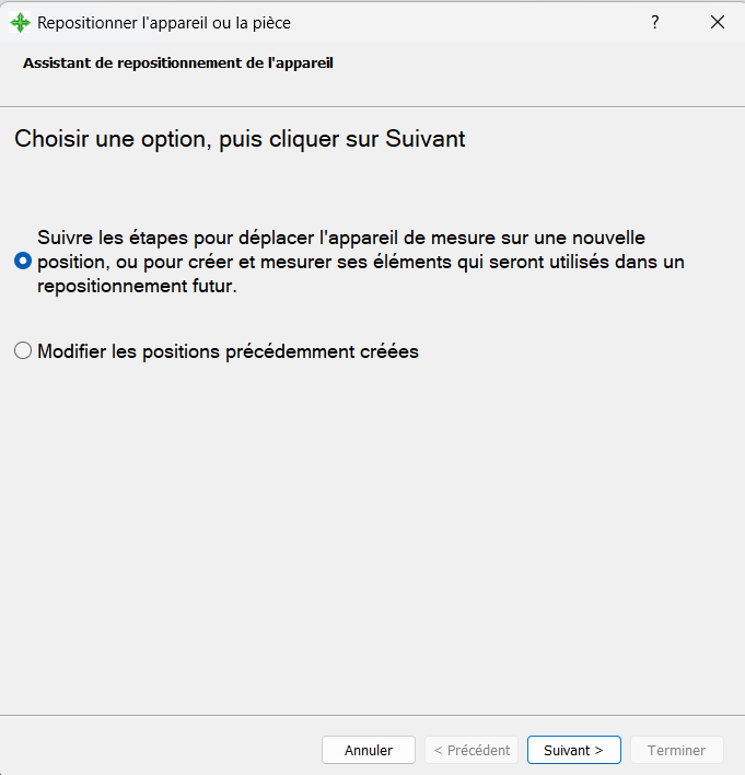 - Attention à bien respecter le même ordre de mesure des éléments de références AVANT le repositionnement de l’appareil et APRES.