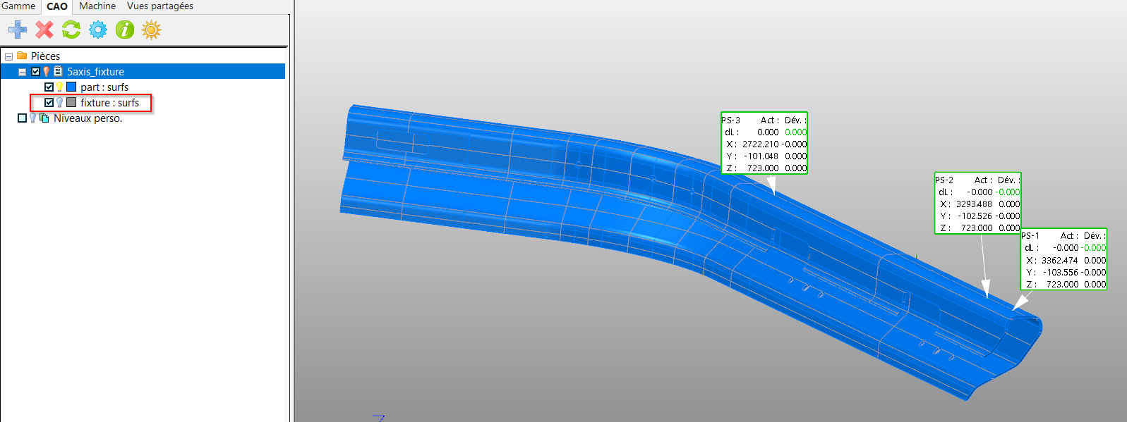L’affichage des niveaux est utile par exemple pour ajouter une image dans le rapport de contrôle et que l’on ne veut pas afficher certaines parties du modèle, comme le bridage par exemple.