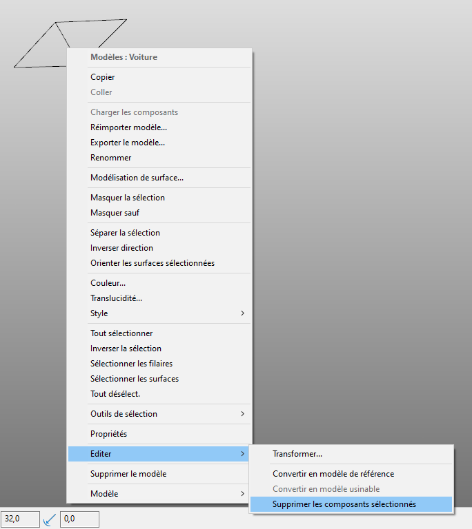 Sélectionner l’élément puis faire un clic droit sur la « bad surface », Editer > supprimer le composant sélectionné.